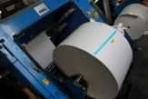 Традиционно подобные машины осуществляют печать на газетных и офсетных сортах бумаги от 42 до 60 г На нашей машине одна из печатных башен оснащена системой ультрафиолетовой сушки PrimeUV (впервые в Казахстана), что дает возможность производить печать на легкомелованных сортах бумаги. Данное решение может использоваться, как самостоятельно - для печати тонких изданий (4 А2 / 8 А3
